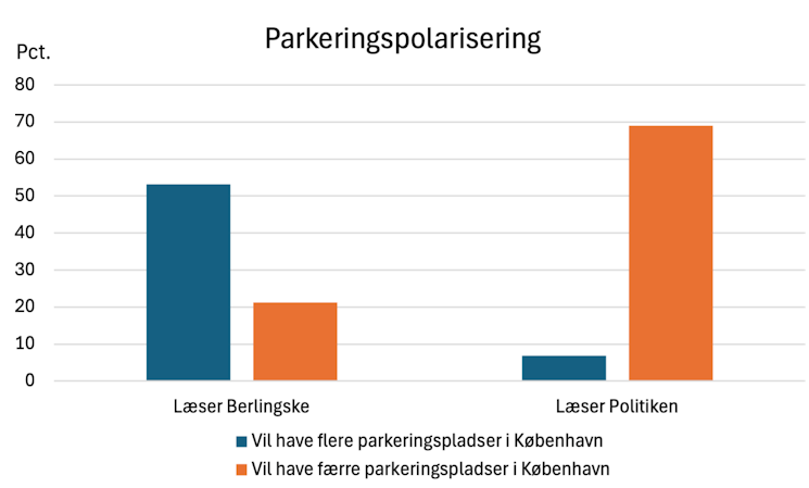 Berlingskes læsere er godt trætte af, at køreturen ind fra Gentofte hver morgen skal sluttes af med 10 minutters forvirret rundtur for at finde et sted i Indre By at parkere benzinslugeren, mens risikoen for at misse kl. 9-mødet gnaver! Politiken-læserne kan ikke se problemet – det er aldrig et issue at finde et sted at klemme ladcyklen ind, når lille Alma-Olivia skal afleveres i veganer-børnehaven før yoga kl. 10:30.