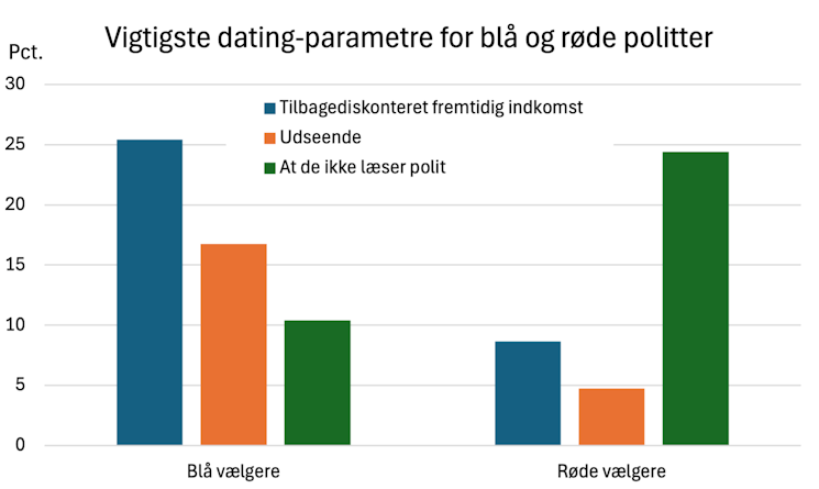 Blå politter går meget op i håndgribelige kvaliteter som udseende og tilbagediskonteret fremtidig indkomst. Så overfladiske er de røde politter slet ikke – du skal for Guds skyld bare ikke læse polit.