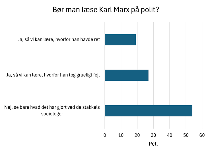 Og apropos Marx: Vi har dårlige nyheder til de godt 50 pct. af politterne, der ikke mener, han hører til på studiet.