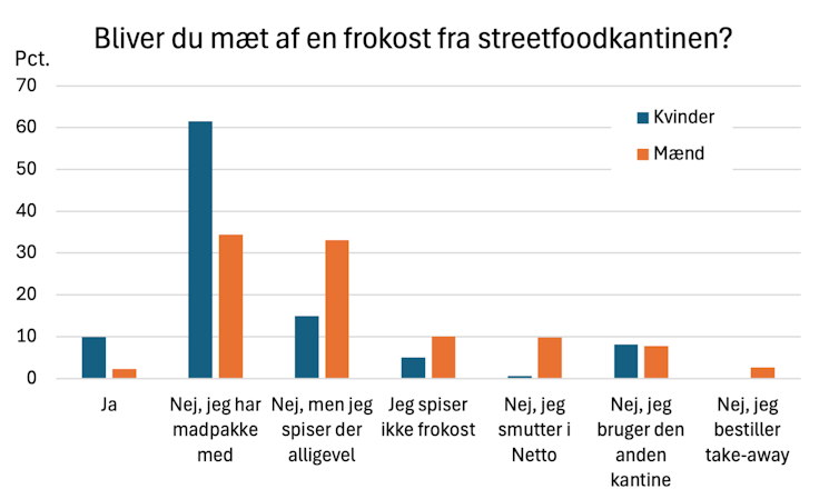 I dette års Politbarometer kan vi bringe den chokerende afsløring, at kun en brøkdel af politterne bliver mætte i streetfoodkantinen. Der er stor forskel på, hvordan mænd og kvinder tackler denne udfordring. For mange af mændene kommer den daglige frokostsult øjensynligt som en overraskelse, så de må skynde sig i Netto, ramme en takeaway eller tage til takke med dagens variation over dhal. Kvinderne, derimod, har snydt hjemmefra.