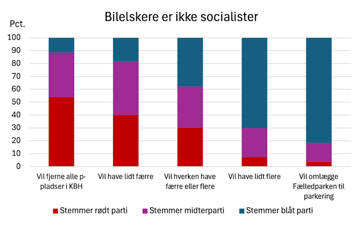 Vi har også spurgt ind til politternes parkeringspladspræferencer. Ved første øjekast er det måske ikke overraskende, at blå politter vil have mere parkering i København. Men ved nærmere eftertanke er der noget, der ikke stemmer, for Ole Birk Olesen og vennerne hader parkeringspladser! Er der en statskundskaber på linjen, der kan forklare, hvad der foregår?